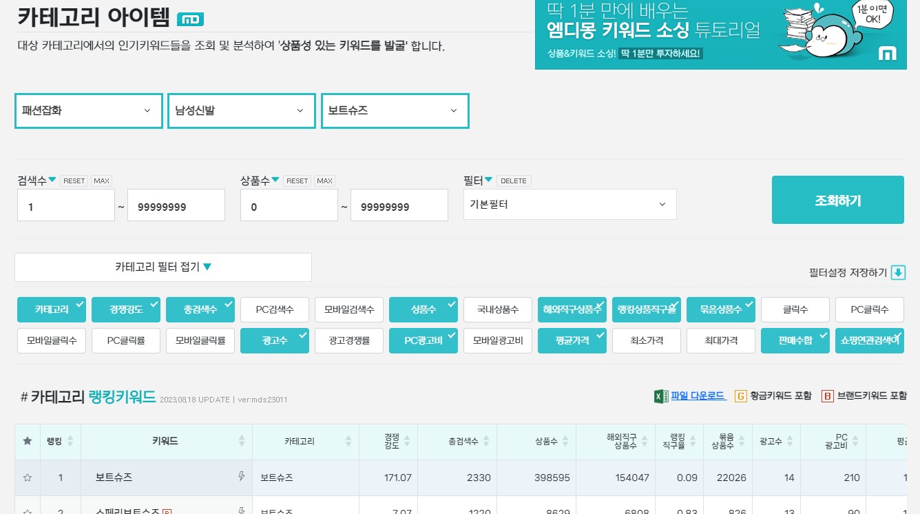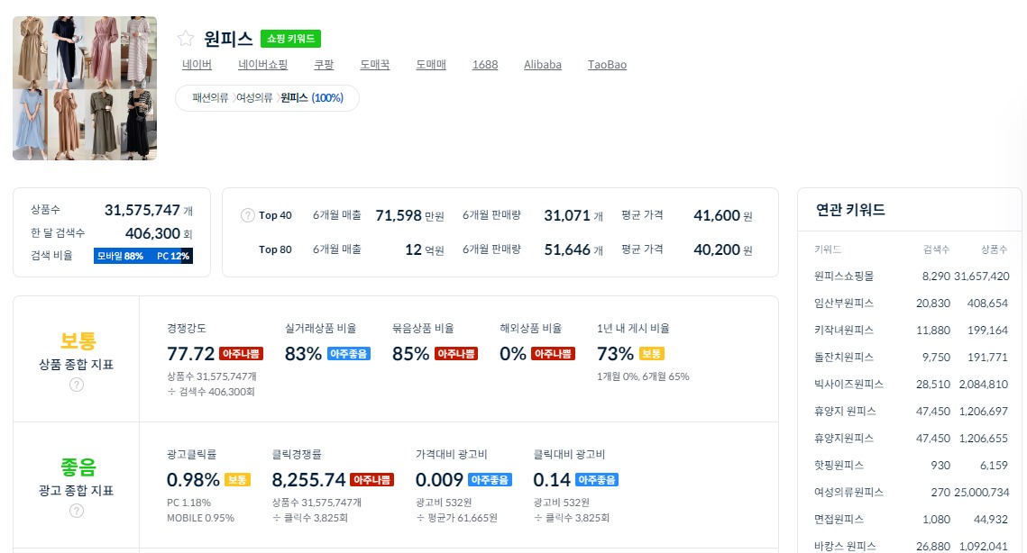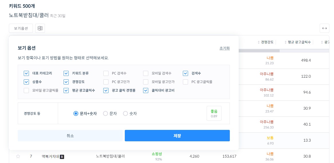 키워드 분석에서 상세한 정보를 제공하고 아이템발굴에서 많은 보기옵션을 지원합니다.
