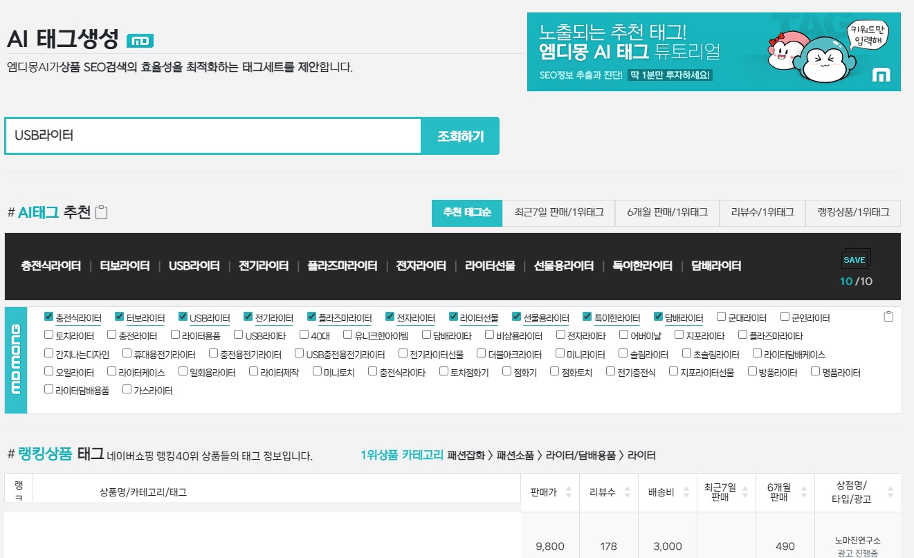 - 태그생성 : 키워드 입력 시 자동으로 태그를 생성해 줍니다.