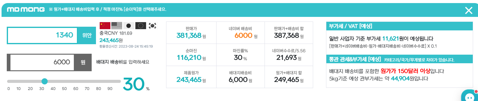 - 마진율 계산기 : 원가, 배송비만 입력하면 판매가를 자동 생성해 줌