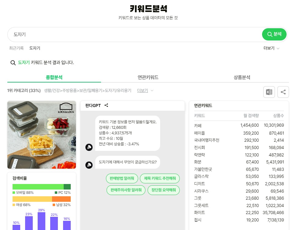 아이템 스카우트와 비슷 UI로 키워드 분석을 해줍니다.