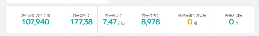 2단 조합 검색수(상품명의 키워드를 2단 조합시에 나오는 검색 수)의 합은 107,940건이나 나옵니다.